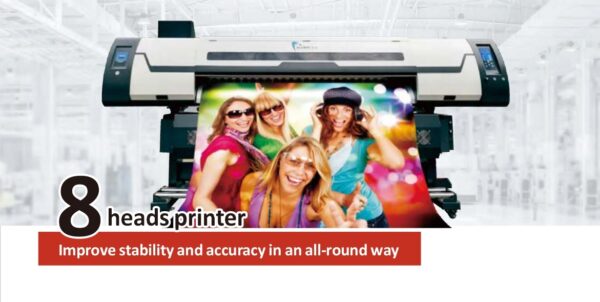 A high-precision 8-color printer designed for exceptional color accuracy and vibrant prints on banners, signage, and large-format media. Ideal for premium-quality advertising and graphic printing.
